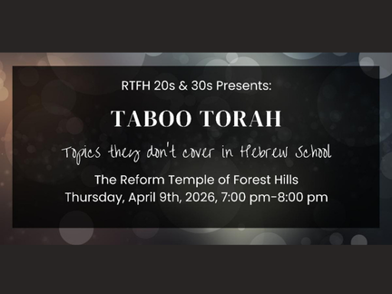 Join RTFH’s 20s & 30s group to explore some Torah that your Hebrew School teacher probably left out of the curriculum. This event is open to both RTFH members and community members in their 20s & 30s.